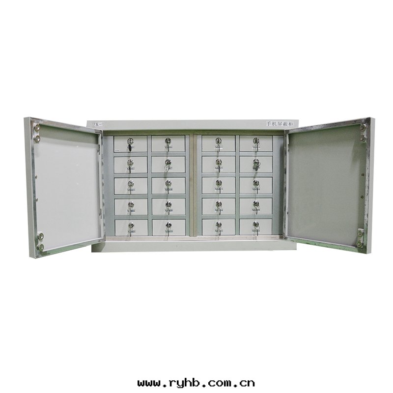 手(shǒu)機(jī)屏蔽櫃,該産品采用(yòng)严密的(de)結構設计,内部(bù)采用(yòng)電(diàn)鍍處(chù)理(lǐ),表(biǎo)面静(jìng)電(diàn)喷塑,具有(yǒu)耐磨性(xìng)及(jí)防腐性(xìng),屏蔽效能(néng)好(hǎo),可(kě)有(yǒu)效抑制移動(dòng)電(diàn)話(huà)信号(hào)的(de)泄漏,並(bìng)可(kě)同(tóng)时(shí)存放(fàng)多(duō)部(bù)移動(dòng)電(diàn)話(huà),每个(gè)抽屜采用(yòng)安(ān)全(quán)式信箱(xiāng)鎖,独立式管(guǎn)理(lǐ)。适應(yìng)于黨政機(jī)关,軍隊,会(huì)議室(shì),考試场(chǎng)所(suǒ)等涉密场(chǎng)所(suǒ)的(de)移動(dòng)電(diàn)話(huà)集中(zhōng)管(guǎn)理(lǐ),不(bù)受用(yòng)電(diàn)环境的(de)影響。